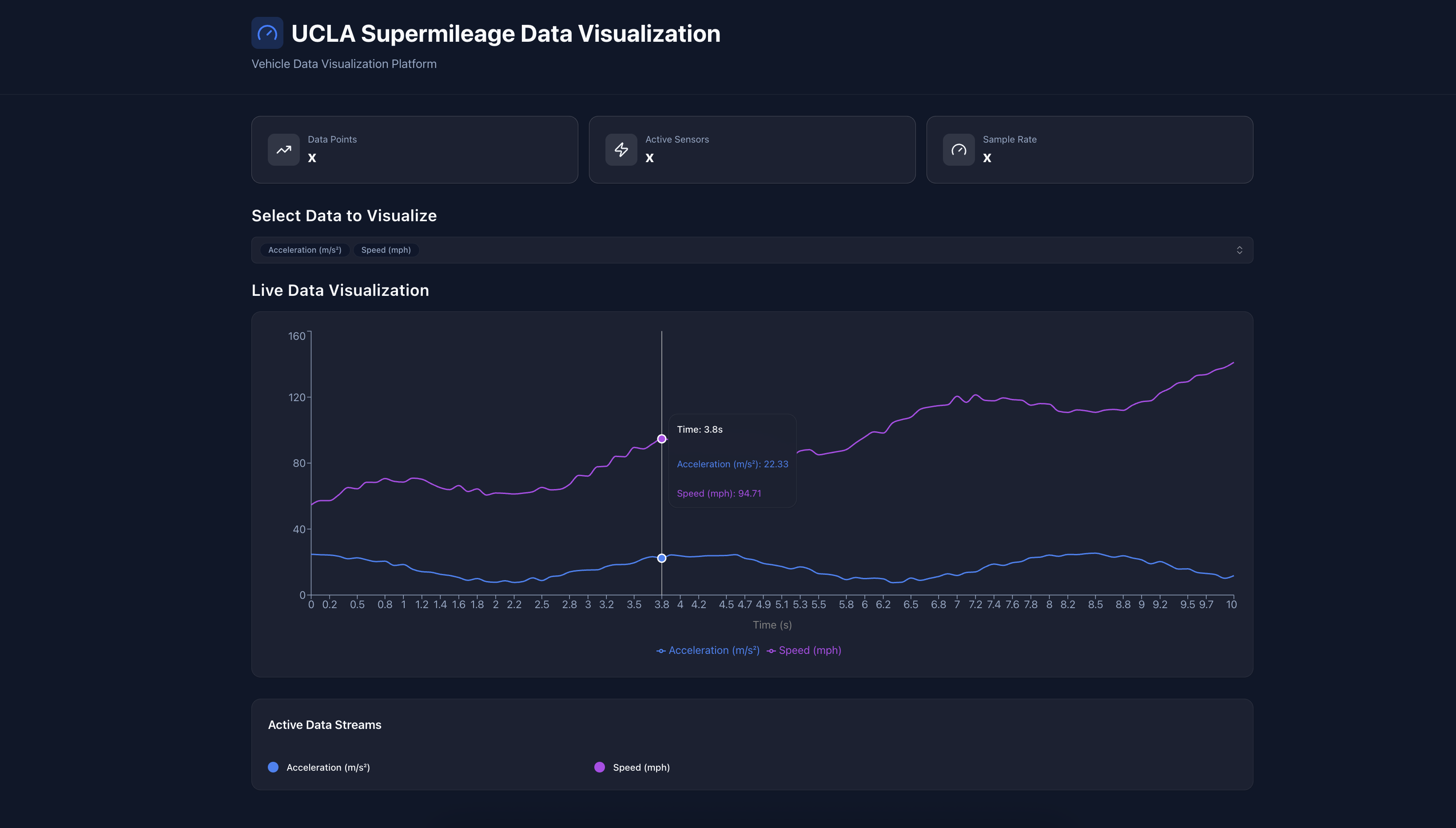 Analytics dashboard for monitoring vehicle performance, efficiency metrics, and real-time sensor data.